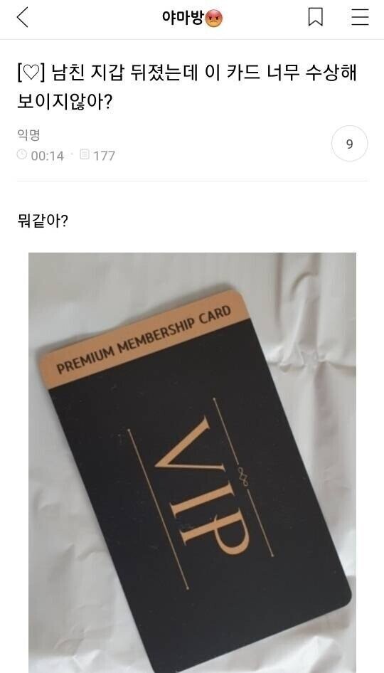 남친 지갑 뒤졌는데 이 카드 너무 수상해보이지않아?