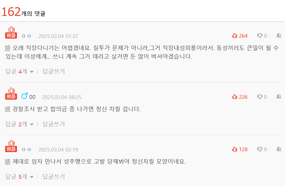 먼저 방탈죄송합니다저희 남편 얘기구요회사 부하여직원 머리쓰다듬기.어릴적 친했던 동네여동생 볼꼬집기.이런 가벼운? 스킨쉽을 별의미없이 그냥 해요그리고 초딩때 친했던 여자동창과 카톡으로 수다떨고 좋은음악 주고받고 이런것도 아무의미없이 그냥 친구니까 연락오면 답하고 하는거라는데.저는 기분드럽고 가정있는 남자가 할행동은 아니라고보거든요??글구 머리쓰다듬고 볼꼬집는거 저는 우리 혈육이랑도평생 해본적이 없음 ㅎ둘이 얘기하다보면 자꾸 저만 예민하고 이상한사람 되는것같고 정신병걸릴것같아요.다들 어찌 생각하십니까