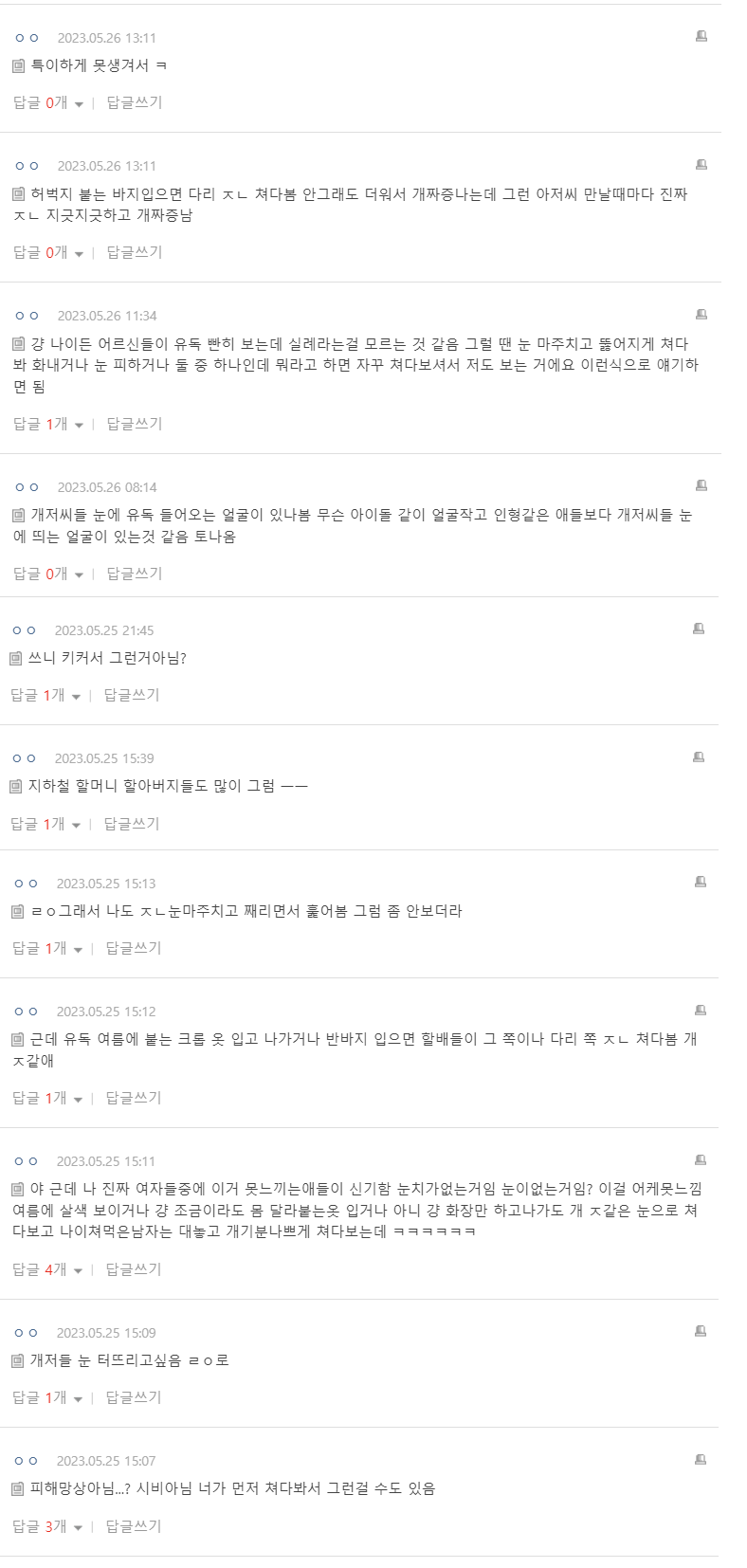 [네이트판] 아저씨들 쳐다보는 거 ㅈ같다 진짜 진짜 개 족같네 시.발 길에서든 정류장이든 버스 지하철 음식점 ㅅㅣ발 예의 밥 말아먹은 새 끼들이 왜 모르는 사람을 빤히 쳐다보고 랄지임? 개빡친다 시이발 네이트판 2023.05.30